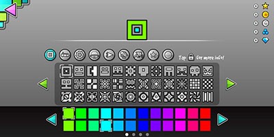 进入‘几何冲刺’的主画面,点界左侧的缤纷笑状图钮,这里就是自做形态的入口。